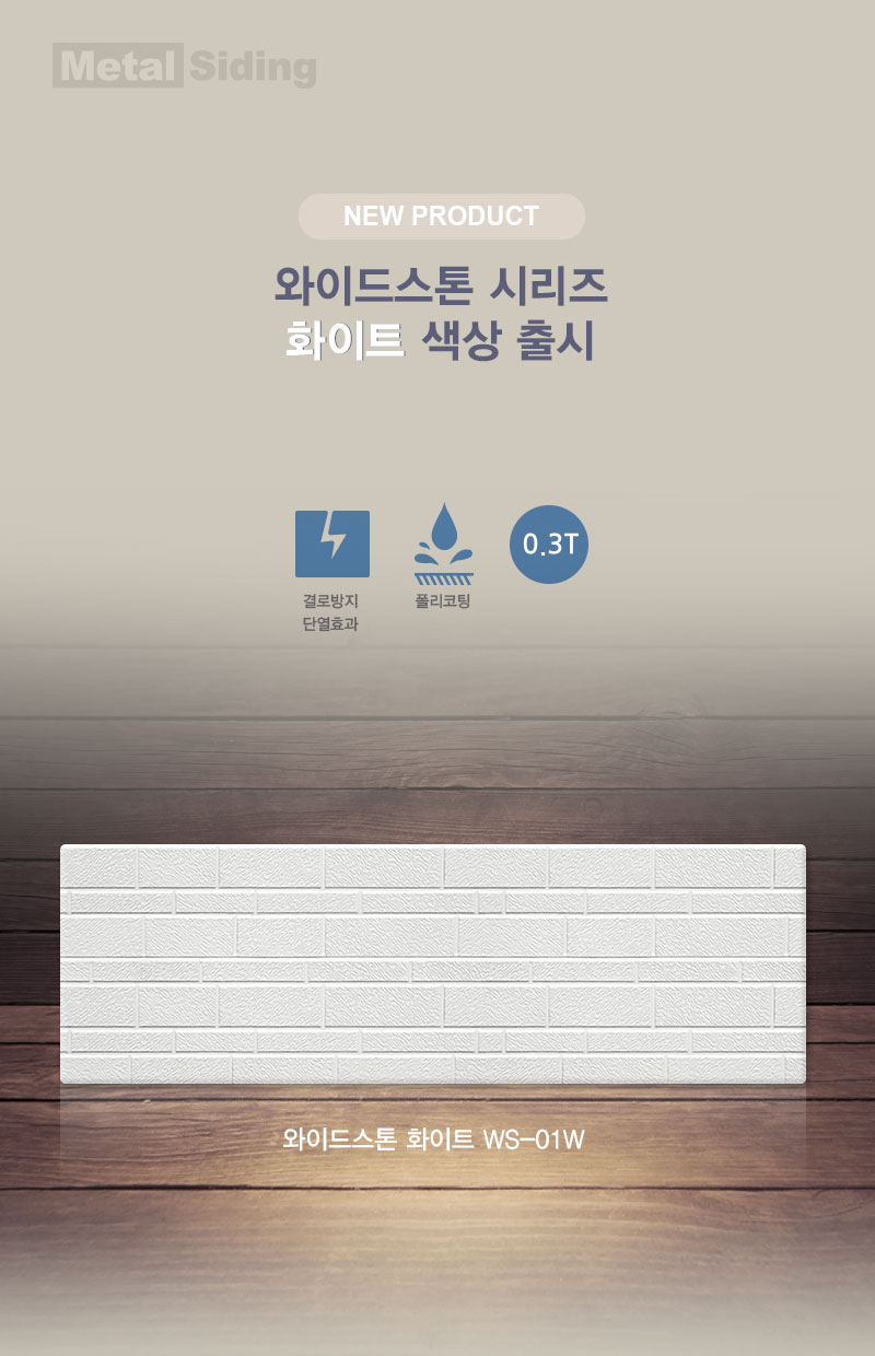 메탈사이딩의 와이드스톤 시리즈에 화이트 색상이 새로 출시되었습니다.