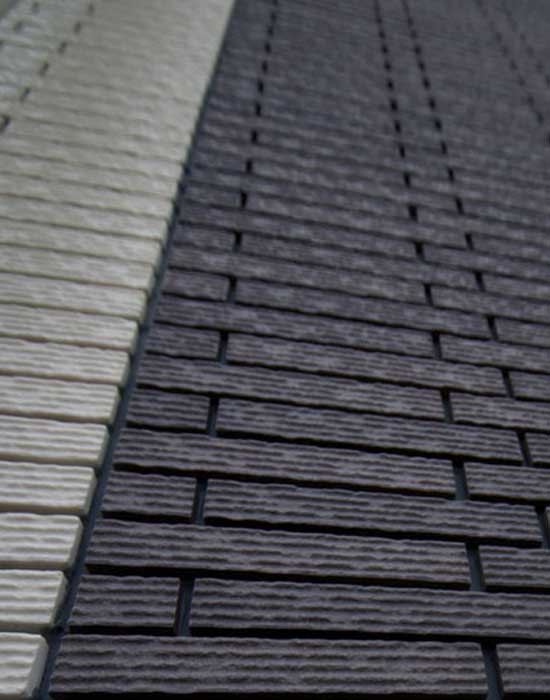 벽면용 타일 바닥용 타일 시그니쳐 보더라인 프리미엄 보더라인 클래식 보더라인 스퀘어 라인 모자이크 라인 시간이 지날수록 빛나는 세라믹 타일 30년 후, 타일 외벽과 도장 외벽의 비용을 비교하면 확실한 차이가 느껴집니다.정기적인 수리나 유지보수가 필요 없고, 정기적인 청소만으로언제까지나 아름다운 모습 그대로를 유지할 수 있습니다. Classic Border Line 클래식 보더라인 제품 색상 | 볼츠 색상 화이트(단색) 50M화이트 51M브라운 56M블랙 57M제트블랙(단색) 58M | 소피아 색상 화이트(단색) L2-711아이보리(단색) L2-712샌드베이지(단색) L2-713베이지(단색) L2-714브라운 L2-715다크그레이 L2-716 | 유니존 색상 베이지 U2-310샌드베이지 U2-330다크브라운 U2-350블랙 U2-380화이트(단색) U2-400 | 윙보더2 색상 화이트 U2-11M그레이 U2-12M베이지 U2-13M샌드베이지 U2-14M | 코러스 색상 바닐라화이트 RN2-201아이보리 RN2-202샌드베이지 RN2-203브라운 RN2-204다크브라운 RN2-205다크그레이 RN2-208 제품 규격 | 볼츠 규격 | 평면타일| 코너타일 BT-220 BT-220A (주문생산품) 1 set300 × 225 × 7.5mm1 set(111+55) × 300 × 7.5mm 중량18.4kg /box 시공량1.34m² /box시공량3.4개 /m 포장20set /box | 소피아 규격 | 평면타일| 코너타일 SF-68/L2 SF-68/LK 1 set300 × 300 × 7.5~9mm1 set150 × 300 × 7.5~9mm 중량23kg /box중량23kg /box 시공량1.6m² /box시공량2.98m /box 포장18set /box포장20set /box | 유니존 규격 | 평면타일| 코너타일 JW-22/U2 JW22/K 1 set300 × 270 × 8mm1 set150 × 270 × 8mm 중량20.5kg /box중량10kg /box 시공량1.61m² /box시공량2.66m /box 포장20set /box포장20set /box | 윙보더2 규격 | 평면타일| 코너타일 WB-145/U2 WB-145/AU2 (주문생산품) 1 set300 × 270 × 7.5mm1 set(150+50) × 270 × 7.5mm 중량22.5kg /box 시공량1.78m² /box 포장20set /box | 코러스 규격 | 평면타일| 코너타일 CQW/RN2 CQW/RK 1 set300 × 300 × 9~11mm1 set150 × 300 × 9~11mm 중량20.5kg /box중량15kg /box 시공량1.07m² /box시공량2.98m /box 포장12set /box포장20set /box 시공사례 브라운 56M볼츠베이지(단색) L2-714소피아베이지 U2-310유니존아이보리 N1윙보더2