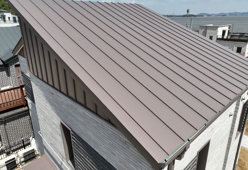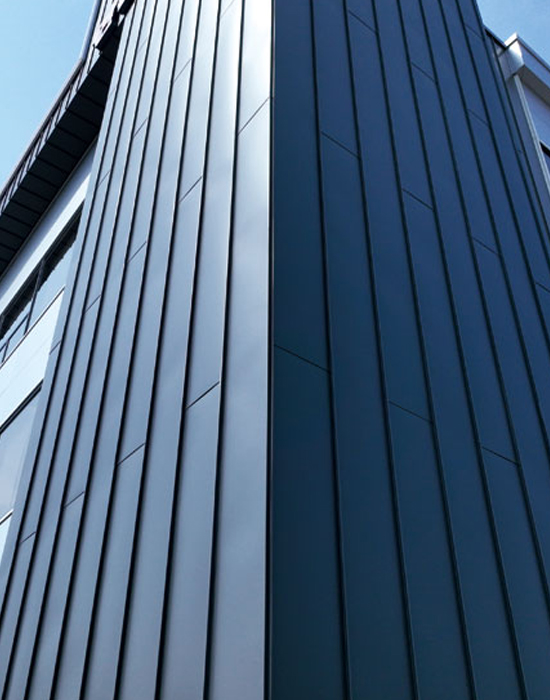 MgCOT ALUMINUM TITANIUM COPPER 알루미늄, 티타늄, 고내식 합금도금강판 21세기 건축의 트렌드인 미니멀리즘과 모던함을 가장 잘 표현할 수 있는 징크는,오랜기간 새 것처럼 이용할 수 있는 자재로 현대 건축이 바라는 가장 멋진 외관을 가지고 있어이제 소비자들의 가장 선호하는 제품이 되었습니다. K-ZINC 홈페이지 바로가기 K-ZINC 카달로그 다운로드 ALUMINUM 알루미늄시트 우수한 내식성과, 경량성을 지닌 알루미늄 시트는 뛰어난 가공성으로 고급 건축물 외장 마감재에 적합한 최고급 알루미늄 시트입니다.알루미늄의 비중은 철의 1/3정도로 가벼워 절단, 접힘, 굽힘 등 가공성이 자유로워 정밀제작이 요구되는 건축물에 적합하고, 부식방지 성능이 뛰어나 해안지대나 공업지역 등 어떠한 기후 환경에도 잘 맞습니다. 우수한 가공성우수한 내식성우수한 시공성 제품 색상 | ALUMINUM 폴리수지 색상 AL 폴리 그레이 (KDA-443P)AL 폴리 레드 (KDA-053R)AL 폴리 블루 (KDA-053B)AL 폴리 블랙 (KDA-0423P) | ALUMINUM 불소수지 색상 AL 불소 라이트그레이 (KDA-108F)AL 불소 코코아 (KDA-048F)AL 불소 그레이 (KDA-258F)AL 불소 블랙 (KDA-118F) | ALUMINUM 솔리드(폴리·불소) 색상 AL 불소 솔리드 그레이 (KDA-502B)AL 불소 솔리드 블랙 (KDA-532B) 제품 규격 두께0.7mm 폭505mm ~ 1,020mm 무게atb. 2kg/㎡ 폴리/불소/솔리드 알루미늄 시트 ① 탑 클리어 코팅 (불소 & 폴리) ② 그라비아 인쇄 (불소 & 폴리) / 불소코팅 (솔리드) ③ 베이스 도장층 (프라이머) ④ 전처리 ⑤ 알루미늄 ⑥ 전처리 ⑦ 기능성도료 시공사례 AL 불소 그레이Location : 전주시AL 불소 블랙Location : 과천시AL 솔리드 그레이Location : 김포시AL 폴리 레드Location : 대부도