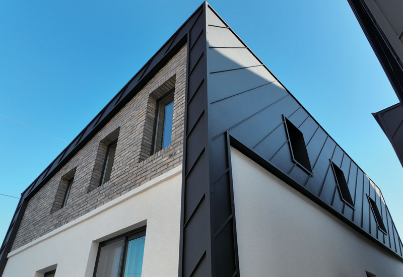 MgCOT ALUMINUM TITANIUM COPPER 알루미늄, 티타늄, 아연도금강판 21세기 건축의 트렌드인 미니멀리즘과 모던함을 가장 잘 표현할 수 있는 징크는,오랜기간 새 것처럼 이용할 수 있는 자재로 현대 건축이 바라는 가장 멋진 외관을 가지고 있어이제 소비자들의 가장 선호하는 제품이 되었습니다. K-ZINC 홈페이지 바로가기 K-ZINC 카달로그 다운로드 MgCOT 맥코트 기존 용융아연도금강판(이하 GI)에 Mg 2%, Al 6%가 첨가된 동부제철 고유의 3원계 고내식 마그네슘 아연도금 강판입니다.GI 대비 내구성이 뛰어나고 가공부 내식성, 내화학성이 우수하여 고내식성을 요구하는 환경에 폭넓은 적용이 가능한 경제적, 친환경적, 미래지향적 제품입니다. 탁월한 가공성탁월한 내오염성탁월한 경제성뛰어난 심미성 제품 색상 | 0.5T 링클 아연도금강판 링클동색 KDW-020K와인스톤 KDW-880B링클네이비 KDW-140T브라운스톤 KDW-010K링클 연회색 KDW-870K링클다크그레이 KDW-930B다크링클 KDW-780B블랙스톤 KDW-000K | 0.5T 프린트 아연도금강판 리얼 화이트 KDP-805P리얼 헤어라인그레이 KDP-290P리얼 연그레이 KDP-610P리얼 라이트그레이 KDP-053P리얼 진그레이 KDP-323P리얼 블루진 KDP-040P리얼 메탈그레이 KDP-370P리얼 펄블랙 KDP-593P리얼 노웨이브블랙 KDP-560P코르텐 오렌지 KDP-023PC코르텐 그린 KDP-103PC코르텐 브라운 KDP-043PC | 0.5T MgCOT®(고내식)PRINTECH+®(고내후) 인피니트 그레이 KMG-303S인피니티 레드 KMG-653S인피니티 블루 KMG-053S인피니트 블랙 KMG-690S | 0.6T 고내식 불연(세라믹) 마그네슘 불연강판 0.6T 불연강판 화이트 KMG-042NF0.6T 불연강판 그레이 KMG-082NF0.6T 불연강판 블랙 KMG-102NF 제품 규격 두께0.4mm ~ 0.5mm 폭518mm ~ 1,219mm 무게atb. 4kg/㎡ 아연도금강판 제품단면 및 적용소재 ① 탑 클리어 코팅 (프린트) ② 그라비아 인쇄 (프린트) / 폴리에스터 수지 (링클) / 세라믹 도장 (불연강판) ③ 베이스 도장층 (프라이머) ④ 전처리 ⑤ (고내식 마그네슘) 아연도금층 ⑥ 냉연강판 ⑦ 아연도금층 ⑧ 전처리 ⑨ 기능성 도료 평판부 내식성 비교 구분360h1,200h2,020h2,930h3,220h Gl 220 g/㎡ Gl 270 g/㎡ 갈바륨 150 g/㎡ MgCOT 150 g/㎡ 시공사례 MgCOT 다크링클Location : 세종시MgCOT 블랙스톤Location : 광주시MgCOT 리얼메탈그레이Location : 용인시MgCOT 리얼진그레이Location : 청주시