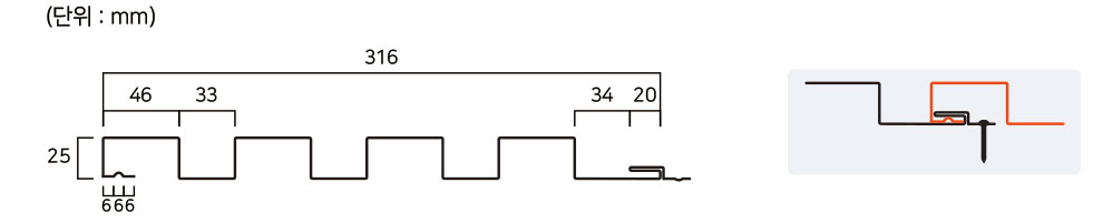 루버사이딩 돌출이음 평이음 각재이음 인터락킹 K-ZINC 징크시스템 21세기 건축의 트렌드인 미니멀리즘과 모던함을 가장 잘 표현할 수 있는 징크는,오랜기간 새 것처럼 이용할 수 있는 자재로 현대 건축이 바라는 가장 멋진 외관을 가지고 있어이제 소비자들의 가장 선호하는 제품이 되었습니다. K-ZINC 홈페이지 바로가기 K-ZINC 카달로그 다운로드 ZINC LOUVER SIDING 징크루버사이딩 징크루버사이딩 시스템은 동일한 간격으로 심플하면서도 입체적인 직선의 아름다움으로 건물의 외벽을 개성있는 모습으로 디자인 할 수 있는 시스템입니다. 노출폭 (가공후 폭) | LS 275 원자재 폭수W518 노출폭W275 (+3) 제품높이H23 (±1) 두께0.5~0.8T | LS 316 원자재 폭수W607 노출폭W316 제품높이H25 두께0.5~0.8T | LS 190 원자재 폭수W380 노출폭W190 제품높이H21 두께0.5~0.8T